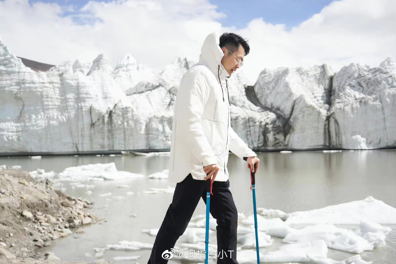 张勇之后创作的另一个爆款短视频就更“振奋人心”了——他穿着自家品牌的“气凝胶宇航服外套”,登上了珠穆朗玛峰五千多米的冰川拍摄视频。