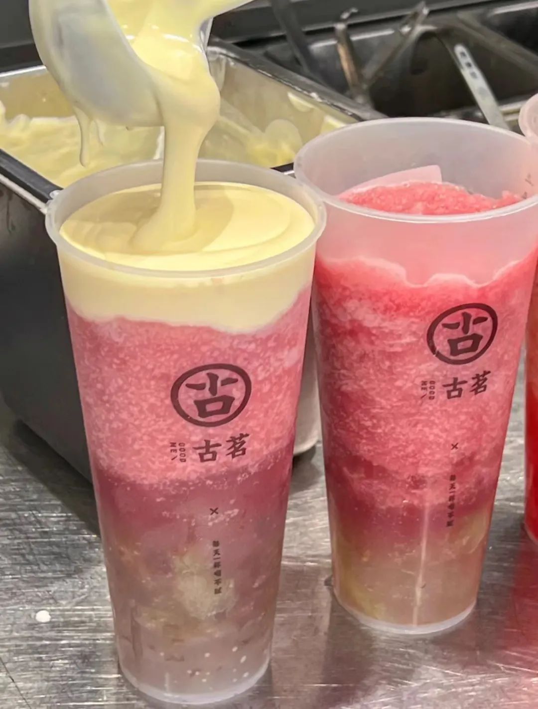 这是古茗的经典搭配“水果+奶盖”,行业流行更迭,但它一直是实打实的销量扛把子。