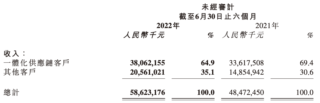 不过,在第二季度,京东物流外部客户收入同比增长27.7%,占总收入的比重近六成;外部一体化供应链客户数量同比保持双位数增长,达6.3万家;包括来自快递、快运等标准化产品在内的其他客户收入同比增长41.6%,其中散单快递收入增速超60%。
