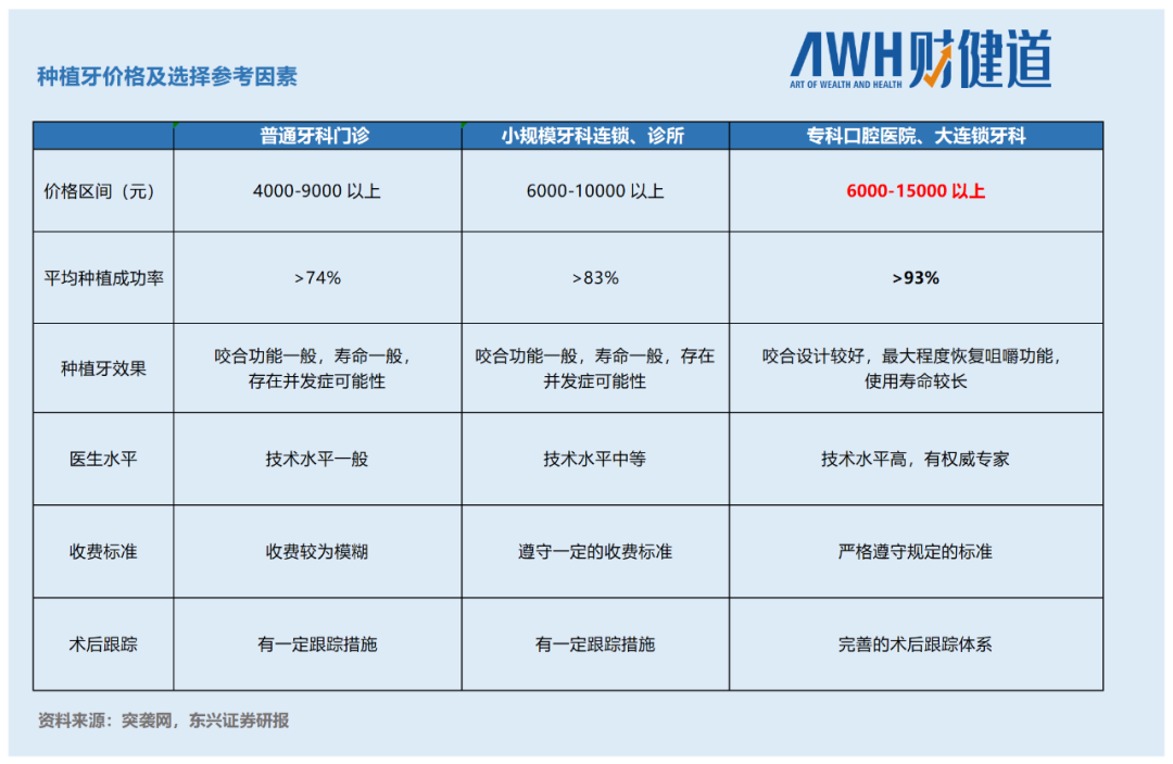 相比贴牙、矫正等业务,种植牙的利润是最低的。
