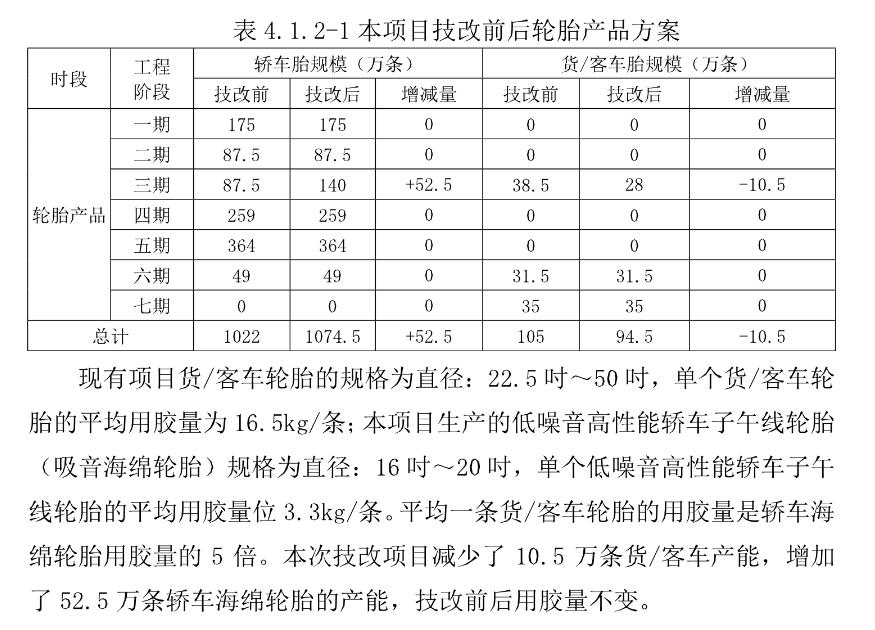 2021年江苏常熟经济开发区发布住友橡胶产品结构调整技改项目环境影响报告书显示:由于目前客户对于低噪音高性能轿车子午线轮胎(吸音海绵轮胎)需求增多,对卡客车轮胎的需求减少,因此住友橡胶(常熟)有限公司拟使用现有厂房实施生产线产品结构调整技术改造,将部分卡客车轮胎设备改造为生产高性能子午线轮胎(吸音海绵轮胎)。其中卡客车轮胎减少10.5万条/年,轿车轮胎增加52.5万条/年。