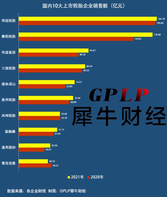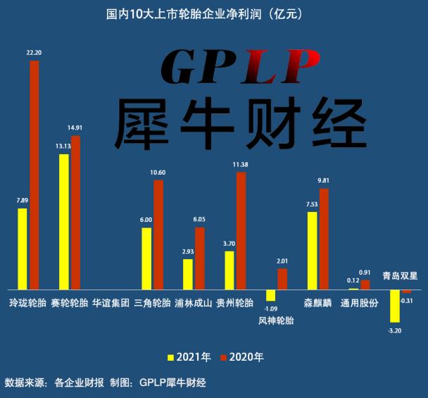 GPLP犀牛财经统计发现,2021年国内10家上市轮胎企业销量和销售额同比普遍上涨,但是净利润却大幅下滑,风神轮胎甚至由盈转亏,青岛双星的亏损扩大了10倍。