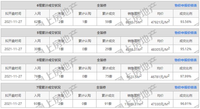项目于去年11月底首开,共入市261套房源,截至目前,累计认购+成交255套,去化97%。