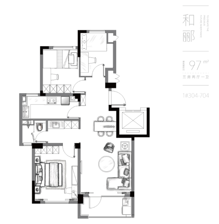 客餐厅一体化,南阳超大阳台,既保证了充足的采光,又保证了通风。
