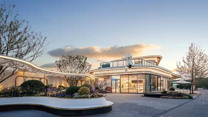 另外项目的商业部分,将打造开放式街区+传统式盒子商业结合的城市级别购物中心——招商花园天地,建筑建筑面积14.9万平方米,以船、帆、海浪为设计理念打造天文与生态主题,计划2023年5月开业。