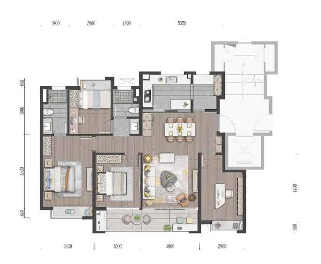 加推的户型均为4室2厅3卫布局,尺度阔绰,居住舒适。