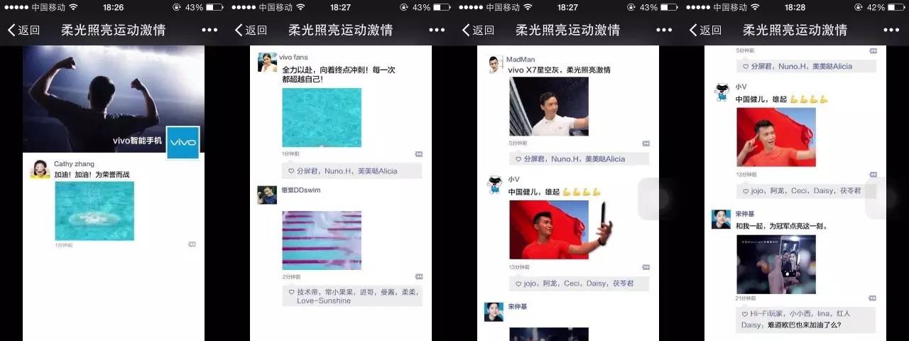 至此,vivo完成了用户体验的第三阶段,即代入感。环环相扣的场景,干脆利索的节凑,让用户在短时间内感知奥运的激情与vivoX7的卖点,并牵动用户的消费意识。