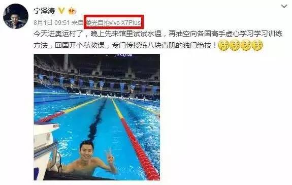 比如,宁泽涛在微博上的近期留言,均显示着“来自柔光自拍vivo X7Plus”。让众多宁泽涛的粉丝一再猜测,vivo是否跟宁泽涛达成了代言协议呢?
