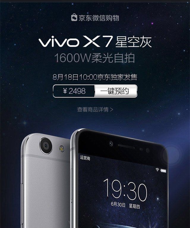 《宁泽涛正向你游来》最后落脚在新品“vivo X7星空灰”,同步跳转到京东微信购买页面。关注手机圈的人一定好奇,“星空灰”是什么鬼?vivo不是6月刚发布X7、7月刚发布X7 Plus吗?