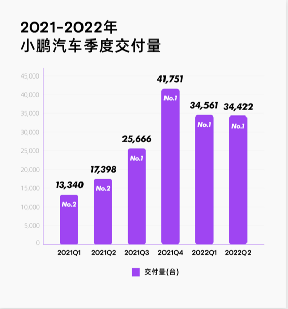 从芯片短缺到供应链断裂,这些负面影响全部叠加在一起,对小鹏的销量产生了巨大的冲击。数据显示,2022年Q2,小鹏汽车的总交付量为3.44万辆,同比增长98%,即便连续第四个季度斩获造车新势力的销量冠军,但在疫情最严重的4月份,小鹏交付量依然时隔7个月重新跌破1万大关。