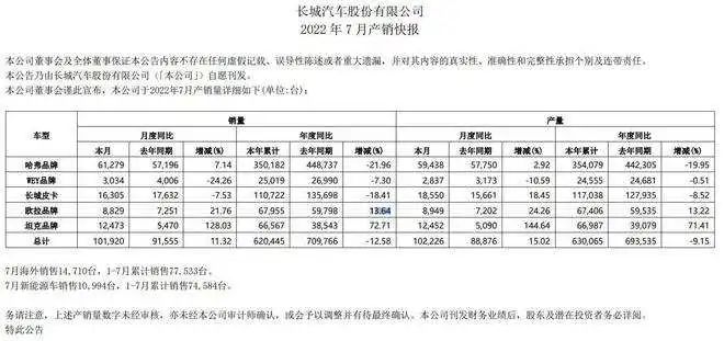 作为参考,今年1-7月,以燃油车为主力的哈弗品牌累计实现新车销售35.02万台,较去年同期下降21.96%。