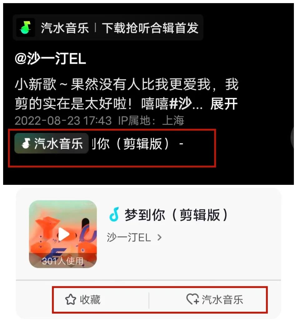 可以看到,Resso和汽水音乐都具有“TikTok Music”商标申请文件中描述的相同功能,目前,抖音上的歌曲页也增设了导流汽水音乐的“一键红心”。当用户收听到他们感兴趣的BGM,可以一键可以转到自己的音乐流媒体平台收听歌曲的完整版本。这样的顺滑操作,避免TikTok一直以来“为他人做嫁衣”的处境,也将用户持续留存在字节跳动的生态中。