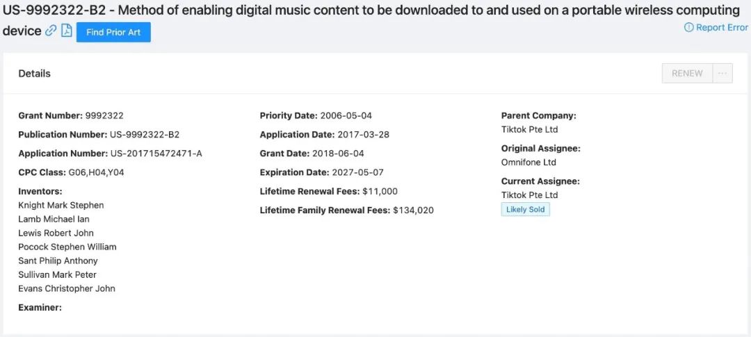 巧合的是,这一专利最开始归属于一家名为Omnifone的英国B2B数字音乐公司。该公司于2016年5月将资产卖给了神秘买家,6年后这个神秘买家浮出书面,显然正是TikTok。
