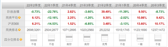 根据天天基金网的统计,诺安成长混合基金近三月和近六月的阶段表现分别为-1.48%、-18.44%,远低于同期同类平均10.01%、-1.98%的涨跌幅度。