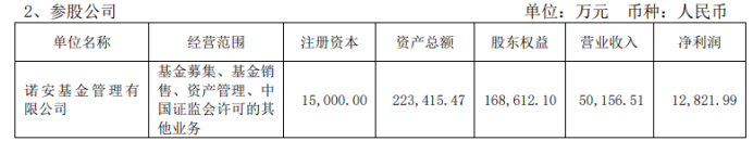 近期,持有诺安基金20%股权的大恒科技(600288.SH)发布了2022年半年报,诺安基金上半年增收不增利,营业收入为5.02亿元,同比增长7.24%,净利润1.28亿元,同比下滑42.29%。