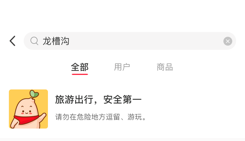 在龙漕沟事件发生之后,有用户发现,在小红书内再搜索相关关键词时,平台会主动弹出风险提示。
