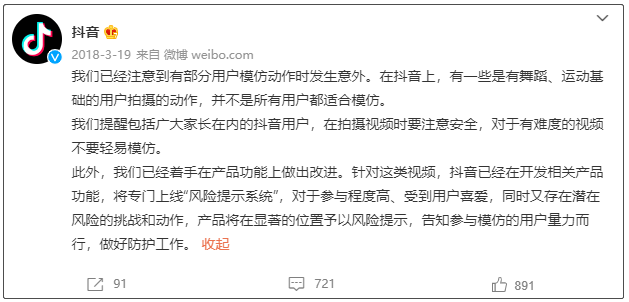 在这一事件过后,抖音便上线了“风险提示系统”,并一直沿用至今。