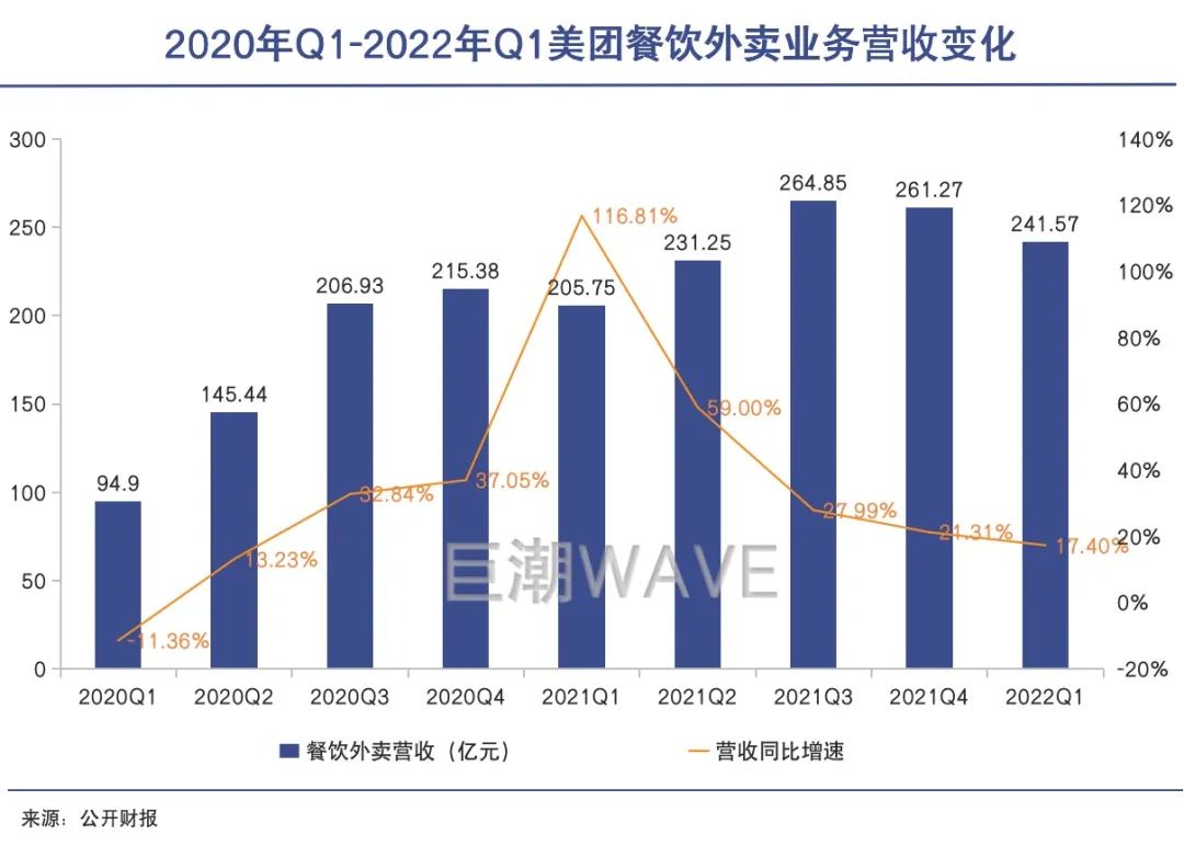 今年一季度,美团的餐饮外卖、到店旅游以及新业务收入均出现环比下滑,其外卖业务增长自去年一季度达到最高峰之后,就开始持续下行。