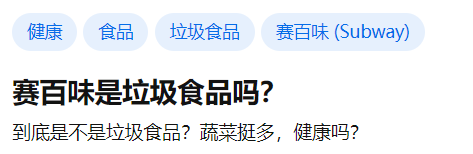 知乎上,就有用户问道:赛百味是垃圾食品吗?