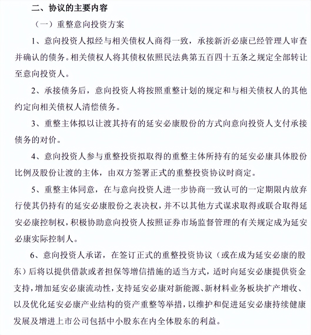三是意向投资人看中延安必康的新能源、新材料业务,未来这块业务将是发展重点。