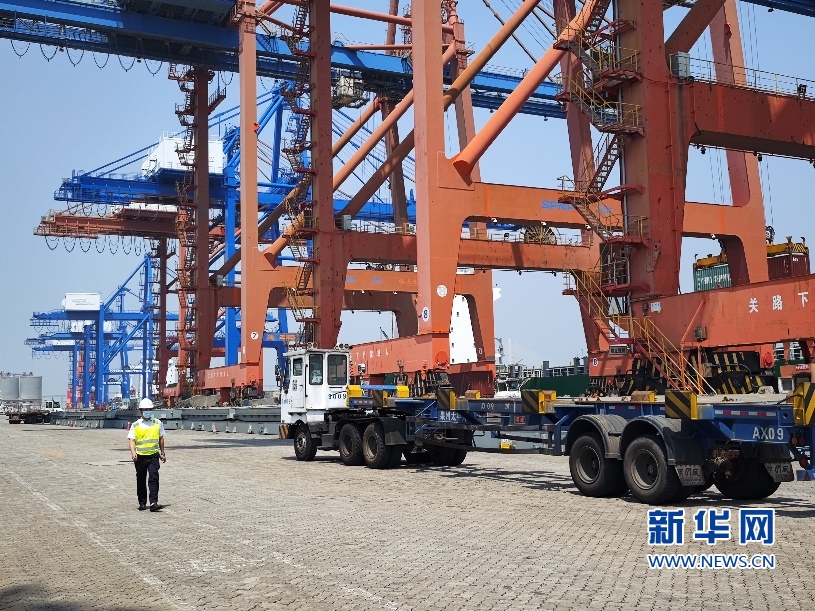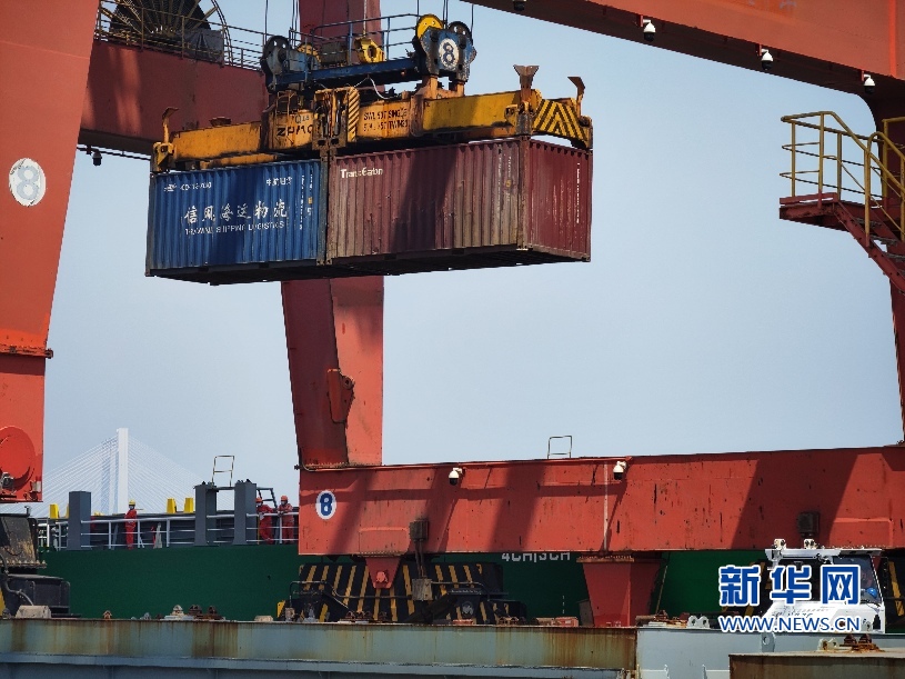 石湖港集装箱作业现场。新华网 刘默涵 摄