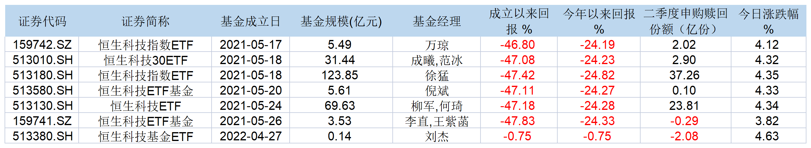 不过,虽然今日暴涨,但对于恒生科技ETF的投资者来说,从深坑里爬出来尚需时日。去年5月份,首批6只恒生科技ETF自成立至今,跌幅超过20%。