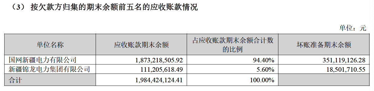 不过,业务稳定的立新能源,回款力度却不大。半年报显示,其应收账款达16.15亿元,占到其总资产的21.2%。排名靠前的欠款方分别为国网新疆电力有限公司、新疆锦龙电力集团有限公司,应收账款余额分别为18.73亿元、1.11亿元,计提的坏账准备余额为3.51亿元、0.19亿元。
