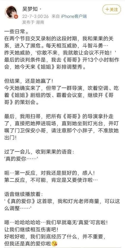 还记得在7月初,总导演吴梦知在微博发文分享了《乘风破浪》与《披荆斩棘》幕后的故事,表示自己在去开了13个小时“哥哥”的制作会,拜托另外一位导演盯“姐姐”,结果最后发现对方仍在开哥哥的策划会。为此,网友们将《乘风破浪》调侃为《乘风破浪的招娣》,质疑芒果TV是“重男轻女”。而芒果TV原本就是以女性用户为主的平台,因“重男轻女”的行为得罪了一波忠实用户,这本身就不是一个好的信号。
