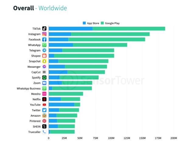 Sensor Tower数据:今年一季度TikTok下载量蝉联榜首