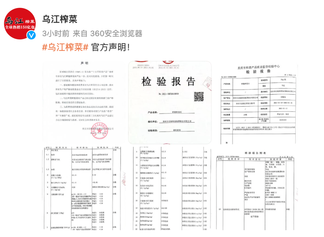 这件事,引起了涪陵榨菜的高度重视,还专门回应称榨菜符合国家标准。