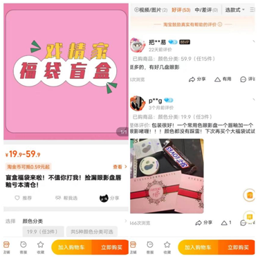 其次从供应链角度看,专售盲盒类化妆品的淘宝C店也具有较大风险。据《未来迹Future Beauty》上述调查发现,许多线上盲盒类产品都由门店自行采购打包组合,其中许多国际大牌产品非正规货源,一定程度上带来假货风险和售后问题。