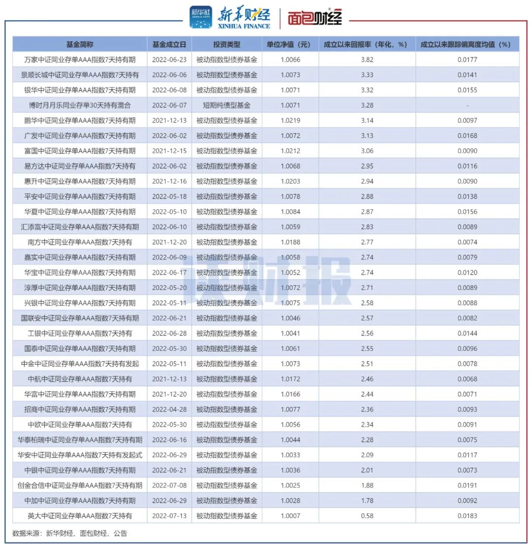 31只同业存单基金大多为被动指数型基金,仅有博时月月乐同业存单30天持有为主动管理型基金。