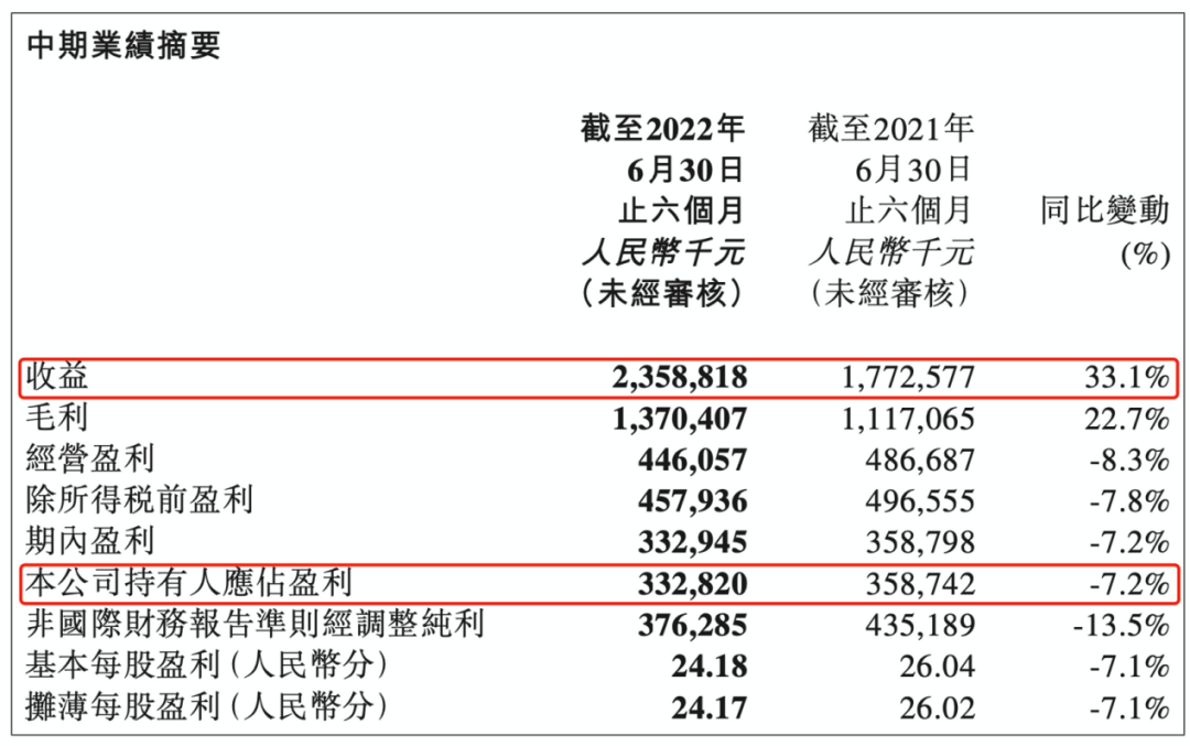 8月25日,泡泡玛特发布其截至2022年6月30日止6个月的中期业绩,根据介绍,雷报得知,今年上半年,泡泡玛特实现营收23.59亿元,同比增长33.1%;公司持有人应占盈利3.33亿元,同比减少7.2%,去年同期为3.59亿元。