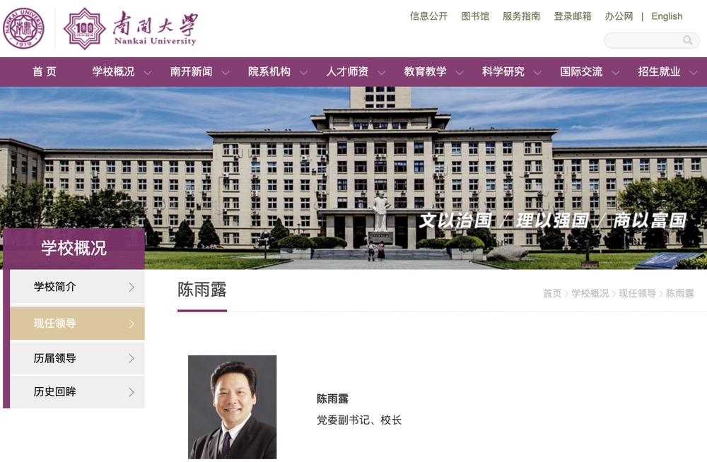 8月26日,界面新闻自南开大学官网“现任领导”栏目获悉,陈雨露已履新南开大学党委副书记、校长。