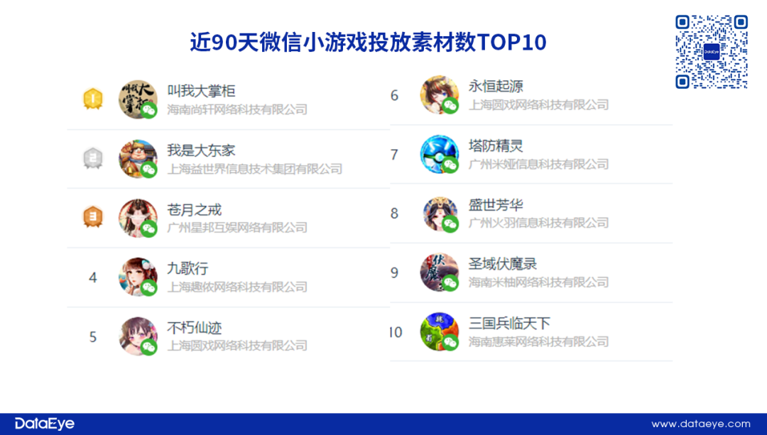DataEye研究院整理了近期微信小游戏畅销榜TOP50产品,如下: