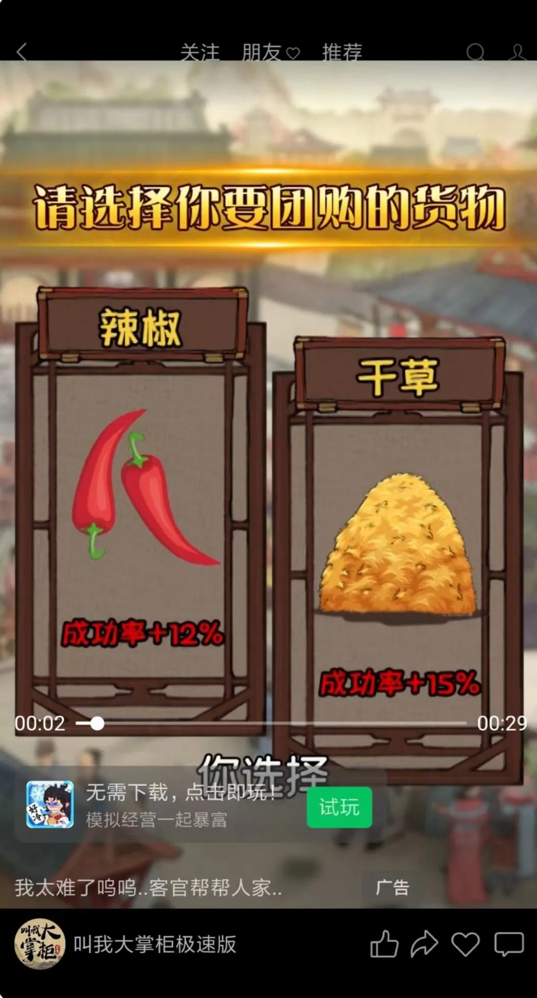 总体来说,第三方短视频投放渠道整体成熟,用户数量大。对于小游戏品类的广告素材来说,整体创作可以贴近手游APP素材,差异化不明显。因此,视频布局以竖屏为主,整体内容可以通过小剧情作为引入,贴合短视频平台的用户生态。