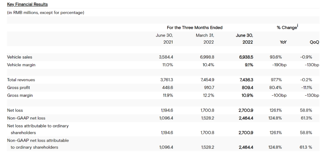 小鹏汽车2022Q2部分财务数据,截图自财报