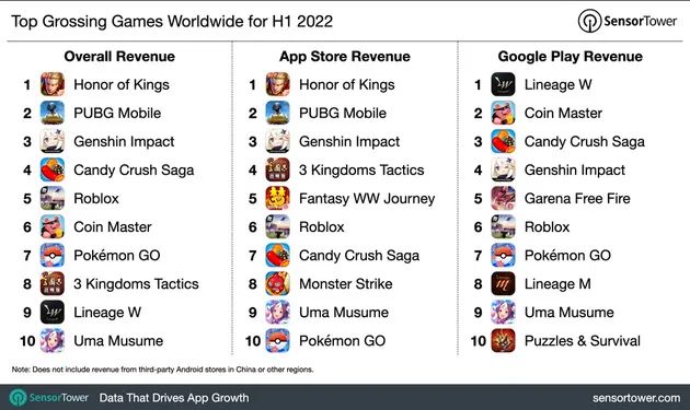 据Sensor Tower5月份的统计数据,《王者荣耀》的DAU约为1.5亿,领先排名第二的《和平精英》8183.92万,《英雄联盟手游》的DAU排名当月第7,为2532.17万。