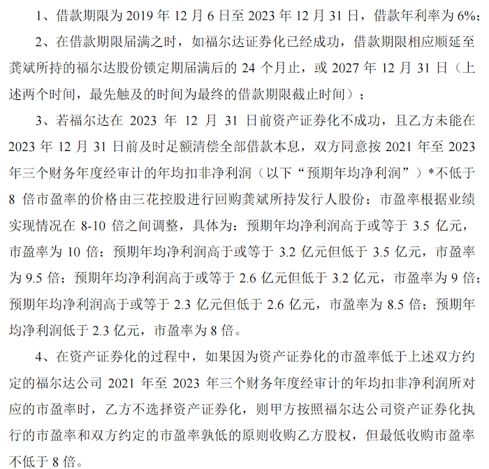 倘若上市不成功,且龚斌无力偿还本息共计7.58亿元,则“一损俱损”,三花控股回购龚斌所持股份的价格要依据福尔达业绩表现及市盈率计算。
