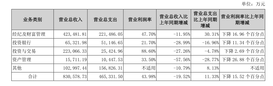 分业务来看,国信证券几个主要板块均有不同程度的下滑。