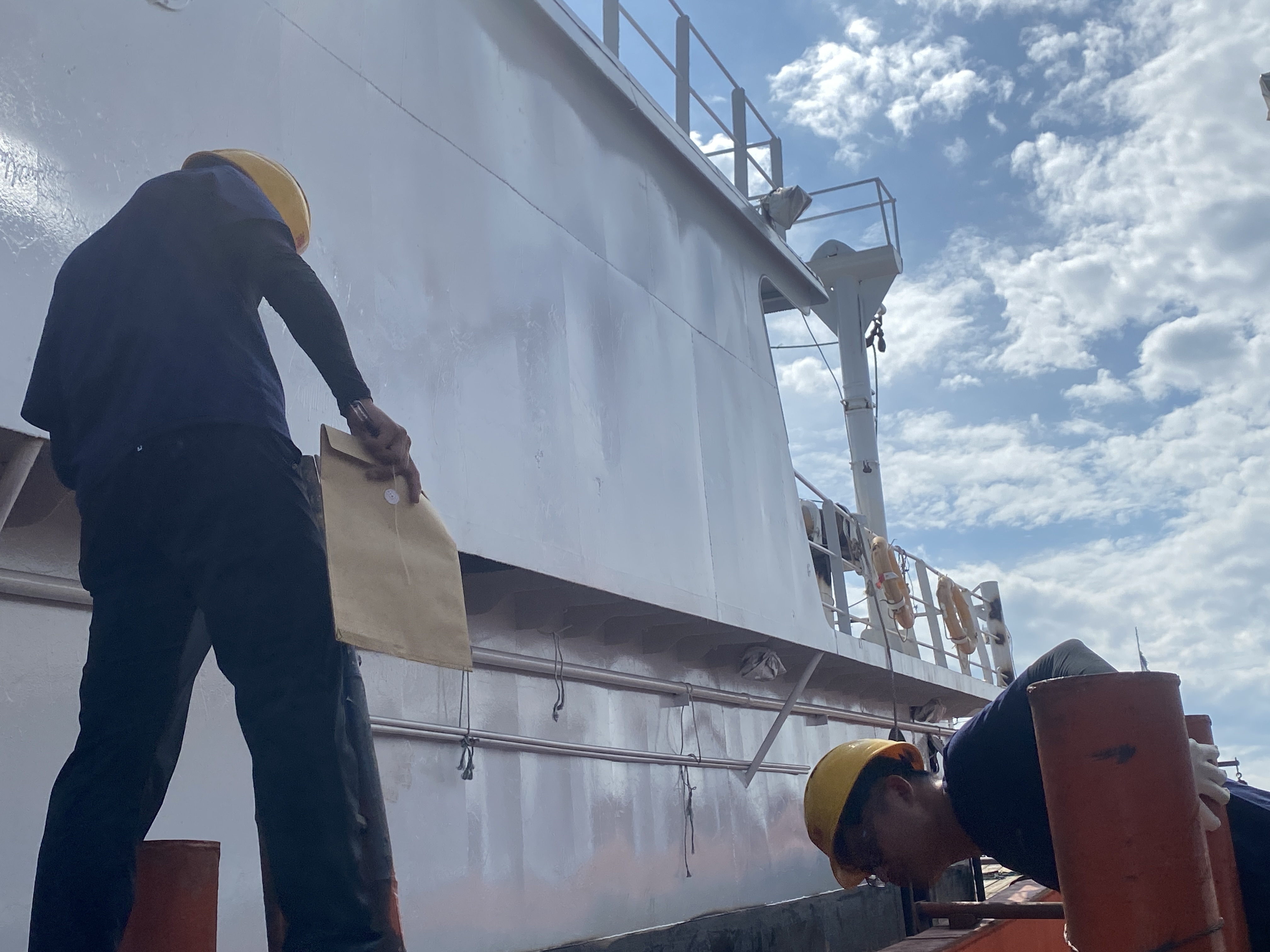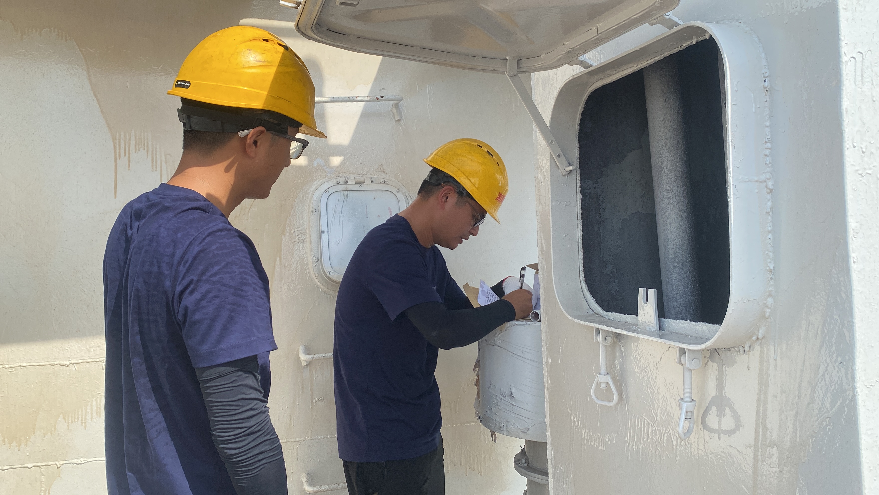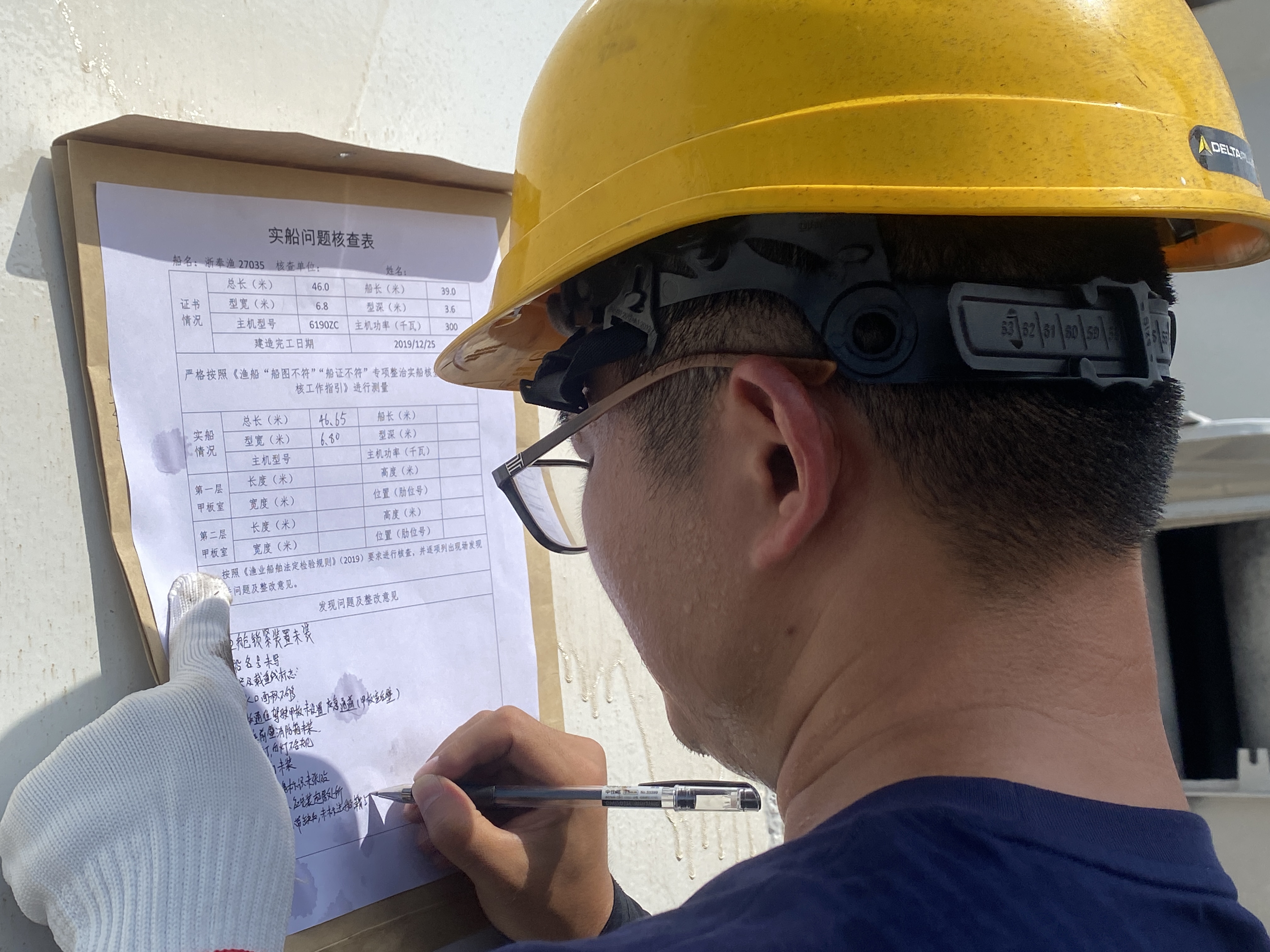 炎炎烈日之下,竞赛如火如荼地展开。根据比赛要求,参赛人员需要在45分钟内,对渔船进行全方位的检查,并提出整改意见。包括检查渔船适航状态,测量渔船主尺度,检查发动机、消防、安全设备配备等情况,保证渔船具备安全航行和作业的条件。来自市渔检中心的谢鑫向界面宁波介绍道,此次比赛的项目在日常工作中都是常态化开展,但此次比赛是与其他渔船检验的优秀者比拼,希望通过比赛认识到自己的短板,不断学习,不断突破。