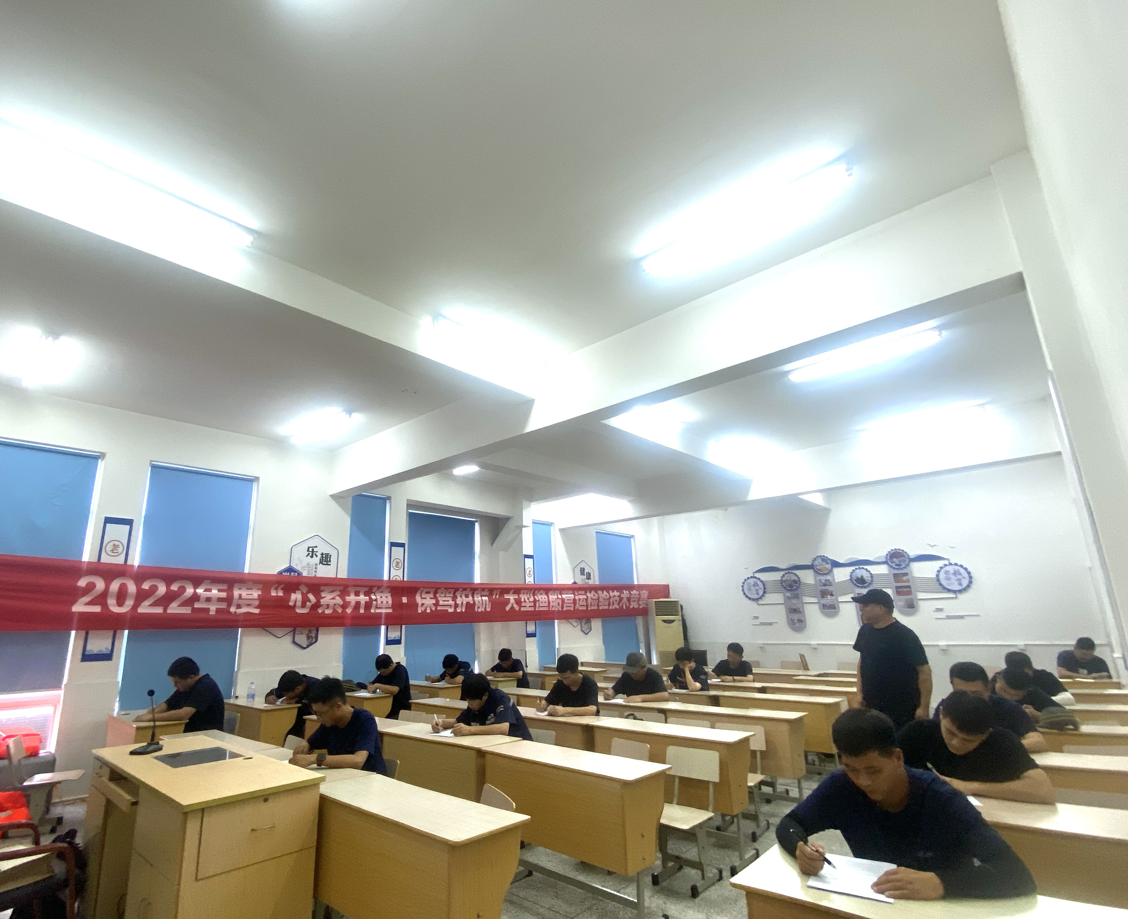 理论武装头脑,实践夯实理论。在结束了早上的渔船检验实操竞赛后,当天下午还举行了渔船检验知识竞赛与临时检验业务培训。此次理论知识竞赛主要涉及渔船检验规则规范,全面考核渔检验船师综合素质,加强渔检验船师队伍建设,切实提升验船师担当尽责、科学公正、依法检验的能力,促进渔船检验工作适应渔业绿色发展、安全发展、可持续发展和规范发展的新要求。