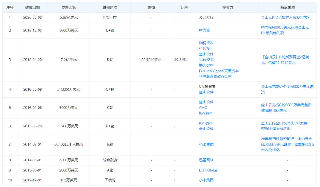 雷军对金山云极为看重,子公司刚刚成立之初就从金山集团抽调近10亿资金投入。并且雷军名下的小米集团和顺为资本陆续在2012年、2014年和2018年给金山云投资数亿资金。