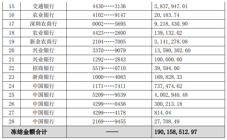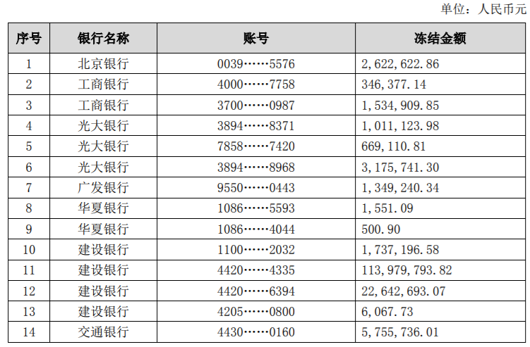 7月7日,奇信股份公告了回复问询函。截至回复日,其被冻结银行账户28个,冻结金额1.9亿元。