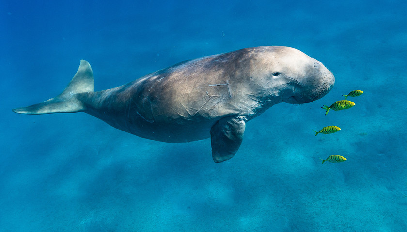 儒艮(Dugong dugon)身体呈纺锤形,长约3米,体重300-500千克,常被视为“美人鱼”传说的原型。它是世界上最古老的海洋动物之一,是唯一严格意义上的海洋草食性哺乳动物,也是儒艮科的唯一现存物种,该物种被IUCN列为全球易危物种,目前种群资源主要集中在澳大利亚。在中国,儒艮从1988年起被列为国家一级重点保护动物。