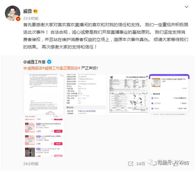 此外,8月16日,明星主播戚薇潜入售假风波,其在直播间售卖的一款护肤产品被消费者质疑为假货,双方各执一词,事件发酵至今依然没有最终结果。