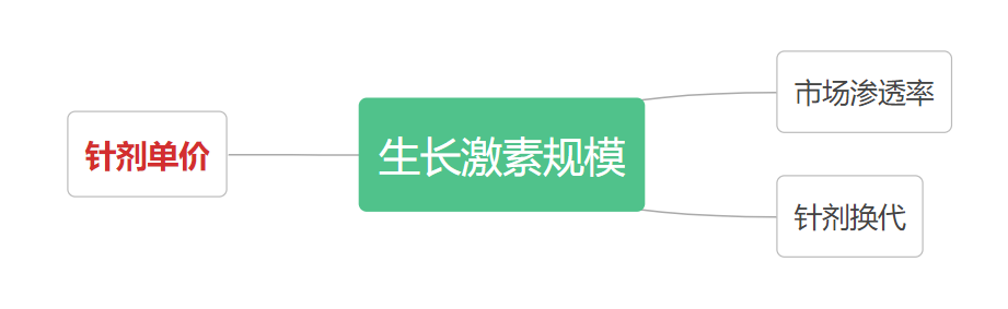 从宏观层面看,在单价稳定的情况下,整个生长激素行业呈稳定发展趋势,且主要受到双重因素的影响:生长激素渗透率的提升、生长激素的升级换代。