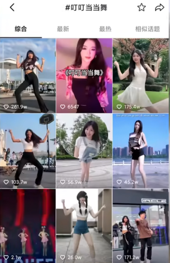 比如《遇见挚爱》,制造出了一个#叮叮当当舞#话题,在抖音的播放量高达30多亿次。再比如《小偷遇见老太太》,是不是也有点熟悉?没错,这两首歌都由越南歌手黄垂玲演唱。