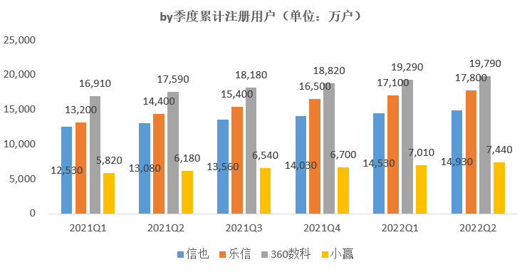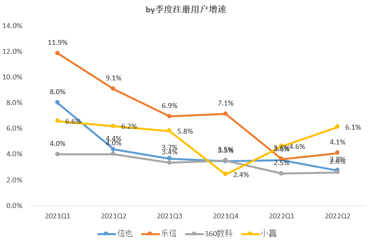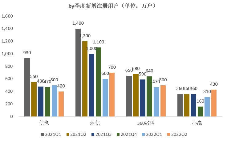 另小赢新增注册用户规模已经走出2021Q4的低谷,2022Q2新增注册用户达到430万,比肩信也。