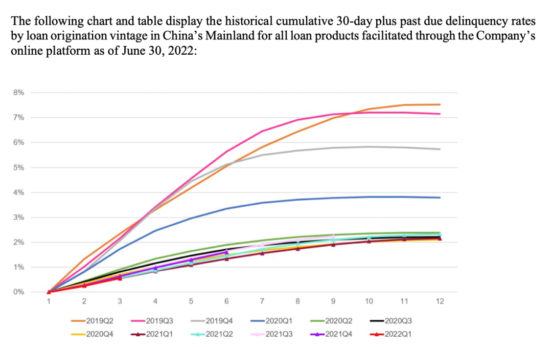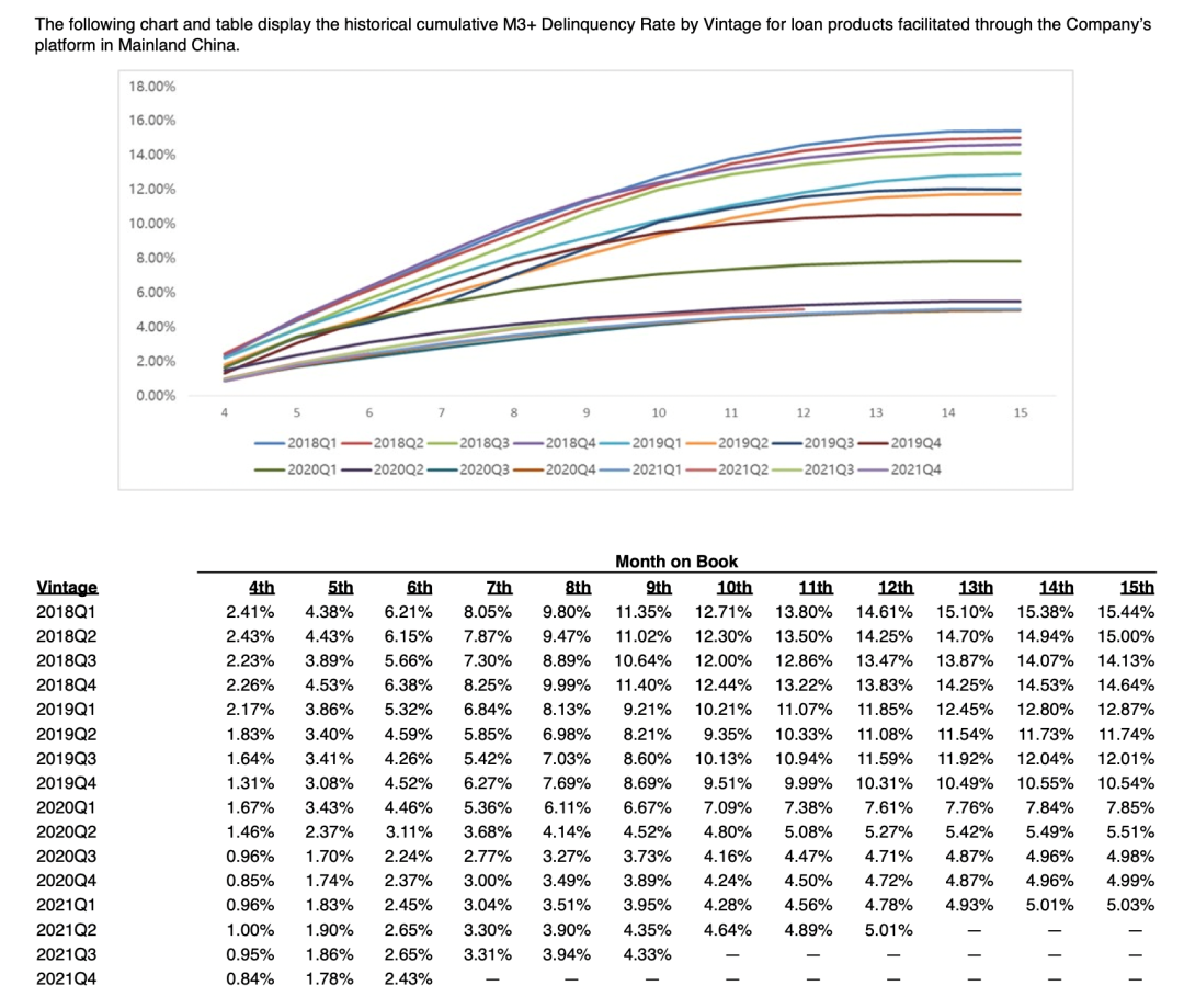 优点是能将不同交易周期内资产拉到同一个水平线上进行观察对比,并通过逾期变现反推前期获客、风险等流程是否有效。这里因小赢未公布相关数据,不进行单独分析。